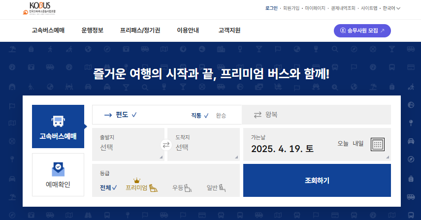 서울행 고속버스는 코버스(KOBUS) 사이트를 통해서만 예매가 가능합니다.