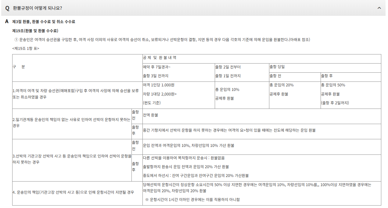 | 차량 선적 가능 | 가능 (사전 예약 / 탑승 1시간 전 도착 필요) |