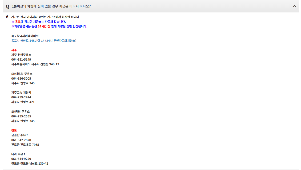| 주차 | 여객터미널 앞 무료 주차장 제공 |